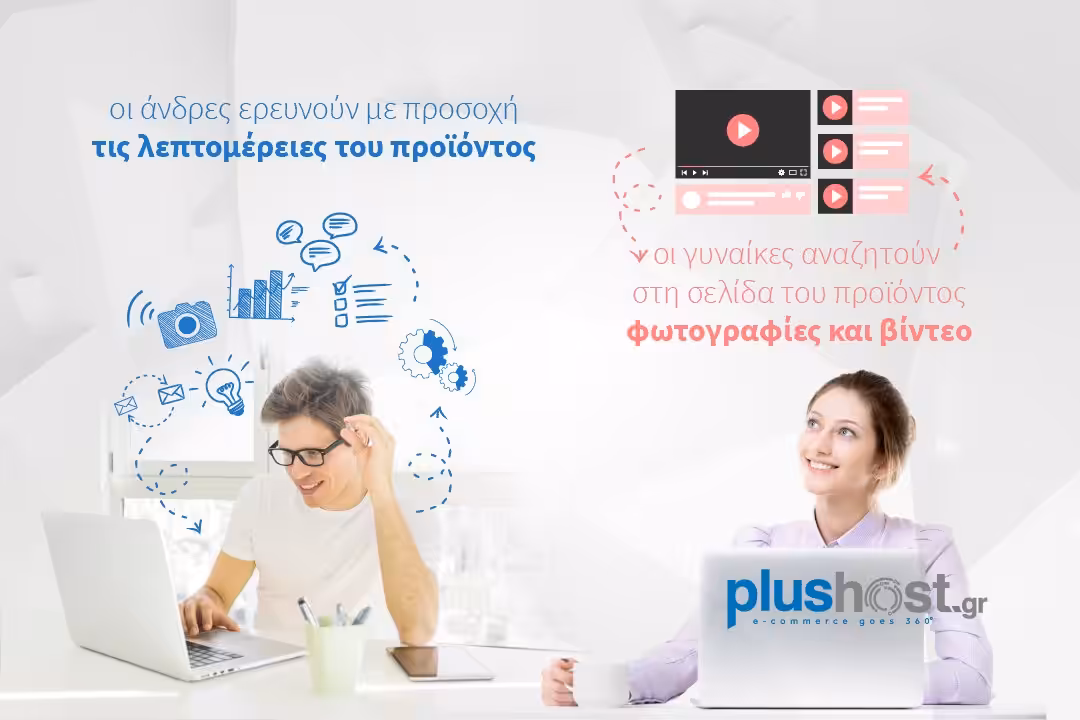 Γνωρίζατε ότι οι αγοραστικές συνήθειες ανάμεσα στα δύο φύλα είναι διαφορετικές; Οι άνδρες για παράδειγμα ερευνούν με προσοχή τις λεπτομέρειες ενός προϊόντος, ενώ οι γυναίκες έλκονται περισσότερο από τις φωτογραφίες και τα βίντεο. Αυτή και άλλες πολλές σημαντικές διαφορές στην καταναλωτική συμπεριφορά των δύο φύλων, κατάφερε να εντοπίσει η plushost.gr, προκειμένου να σας βοηθήσει να γνωρίσετε καλύτερα το δικό σας target audience και να δημιουργήσετε πιο αποδοτικές και στοχευμένες στρατηγικές marketing.