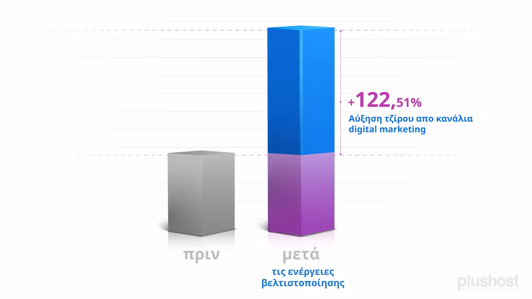Πριν τις ενέργειες βελτιστοποίησης από την Plushost το 42,31% του συνολικού τζίρου προερχόταν από τα κανάλια digital marketing