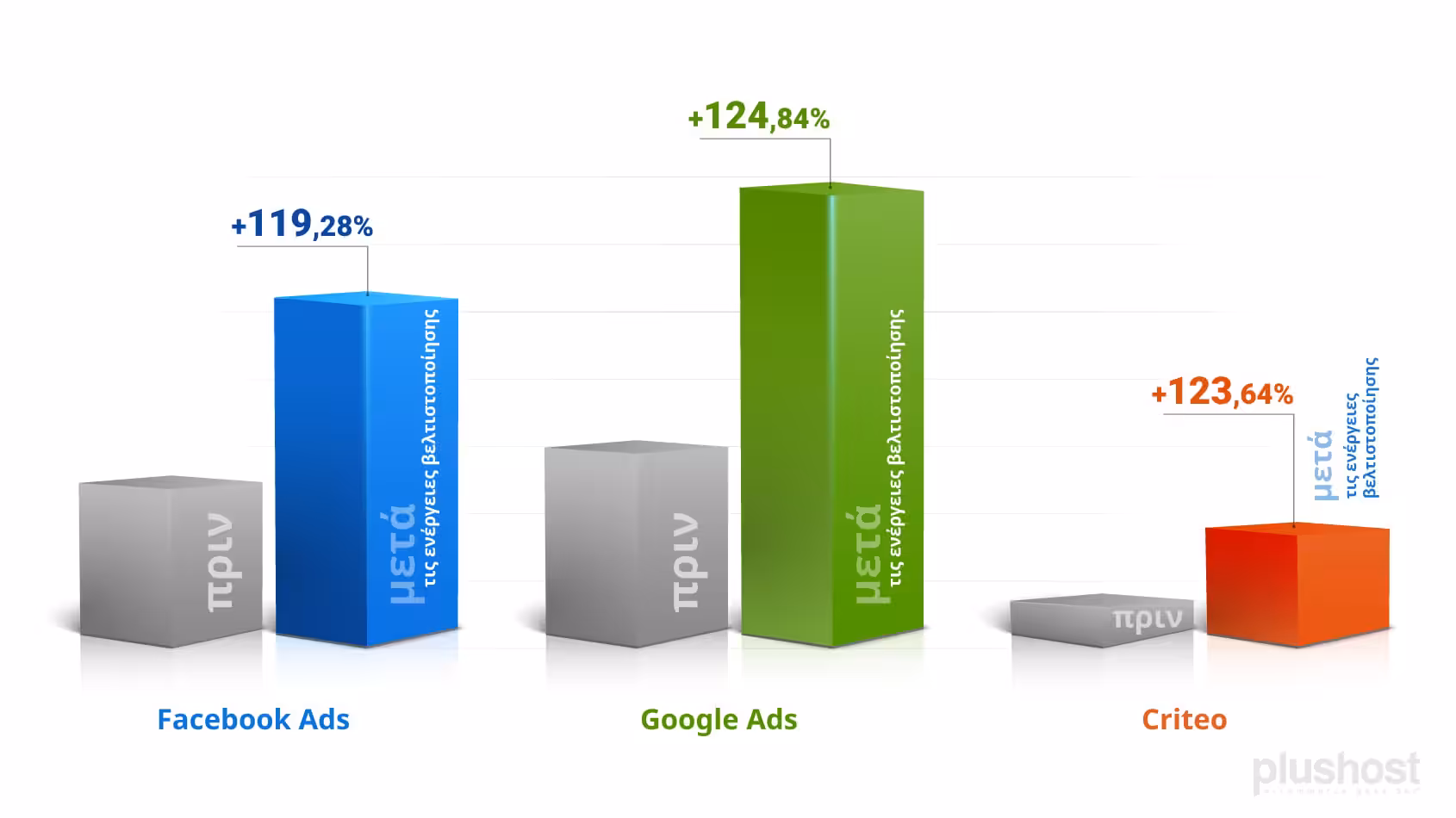 Μετά τις ενέργειες βελτιστοποίησης που έγιναν τον τελευταίο χρόνο από την Plushost το ROAS αυξήθηκε στο 19,88