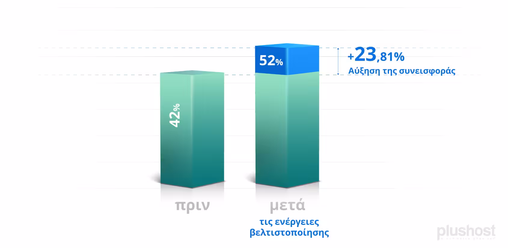 Πριν τις ενέργειες βελτιστοποίησης από την Plushost το 42% του συνολικού τζίρου προερχόταν από τα κανάλια digital marketing.
