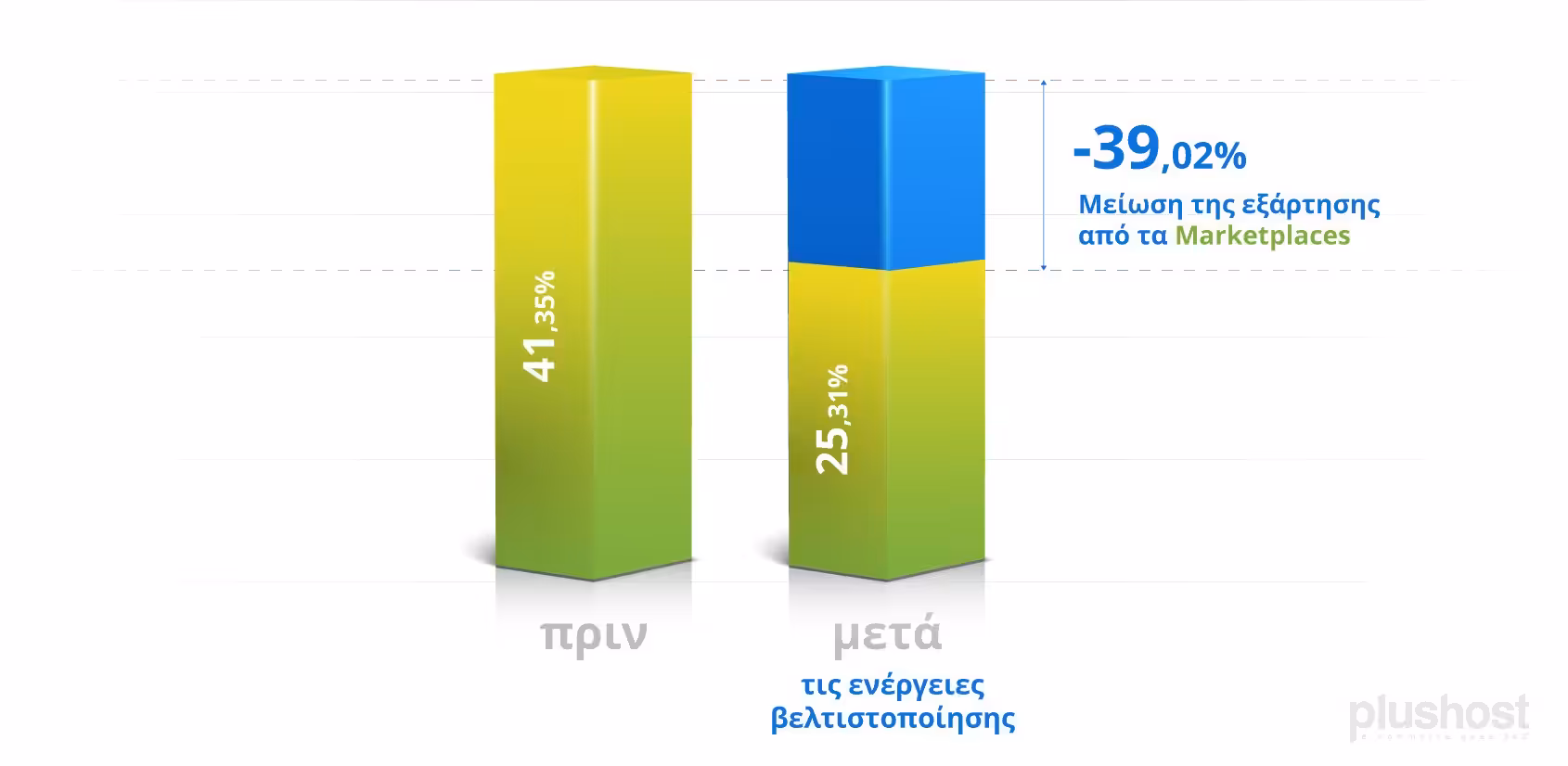 Μετά από έναv χρόνο συνεργασίας με την Plushost το ποσοστό του τζίρου που εξαρτάται πλέον από τα marketplaces μειώθηκε στο 25,31%.