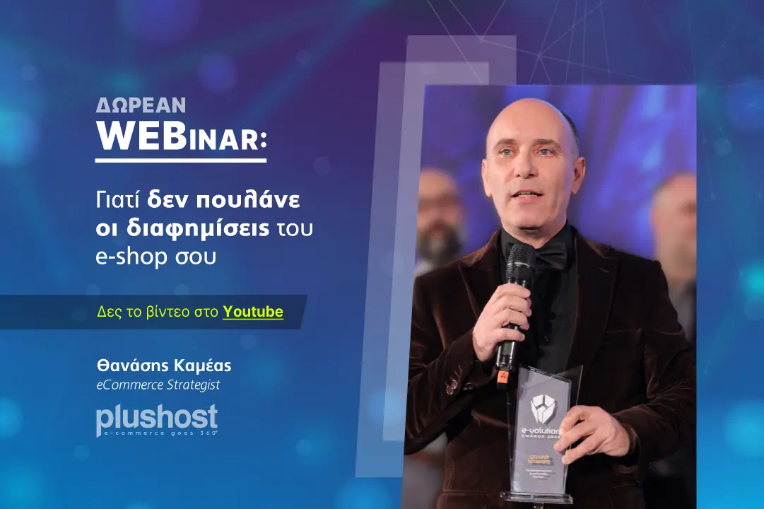Στο webinar με τίτλο «Γιατί δεν πουλάνε οι διαφημίσεις του eShop σου», ο Θανάσης Καμέας, eCommerce Strategist & ιδιοκτήτης της Plushost, μπαίνει στην ουσία και απαντά στα ερωτήματα που πραγματικά καίνε κάθε ιδιοκτήτη eShop.