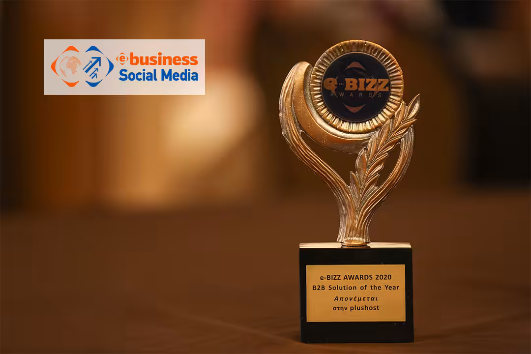 Στην Plushost απονεμήθηκε το βραβείο B2B Solution of the Year στα e-bizz Awards 2020 στο πλαίσιο του 9oυ συνεδρίου E-Business and Social Media World. Το βραβείο παρέλαβε ο CEO της Plushost, κ. Θανάσης Καμέας, από τον πρόεδρο της Οργανωτικής Επιτροπής του 9oυ συνεδρίου E-Business and Social Media World και διευθύνοντα σύμβουλο της Smartpress, κ. Κώστα Νόστη.