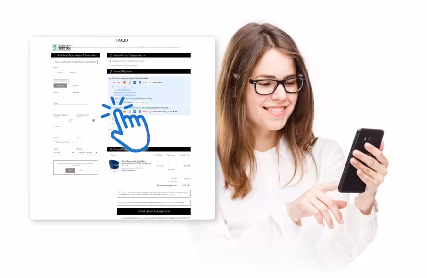 Εφαρμόσαμε την πλέον γρήγορη διαδικασία πληρωμής της παραγγελίας One-Click Checkout όπου ο χρήστης ολοκληρώνει την διαδικασία σε 30″.