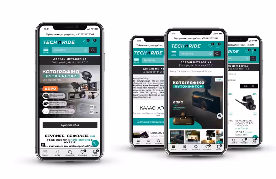 Η plushost.gr με την ολοκληρωμένη υπηρεσία ανάπτυξης ηλεκτρονικών καταστημάτων 360° e–commerce ανέλαβε την υλοποίηση του e–shop και την εκτέλεση του marketing του Technride.gr Με την αξιοποίηση στο έπακρο της τεράστιας τεχνογνωσίας των 10 Expert Teams της plushost.gr, τα αποτελέσματα ήταν θεαματικά.